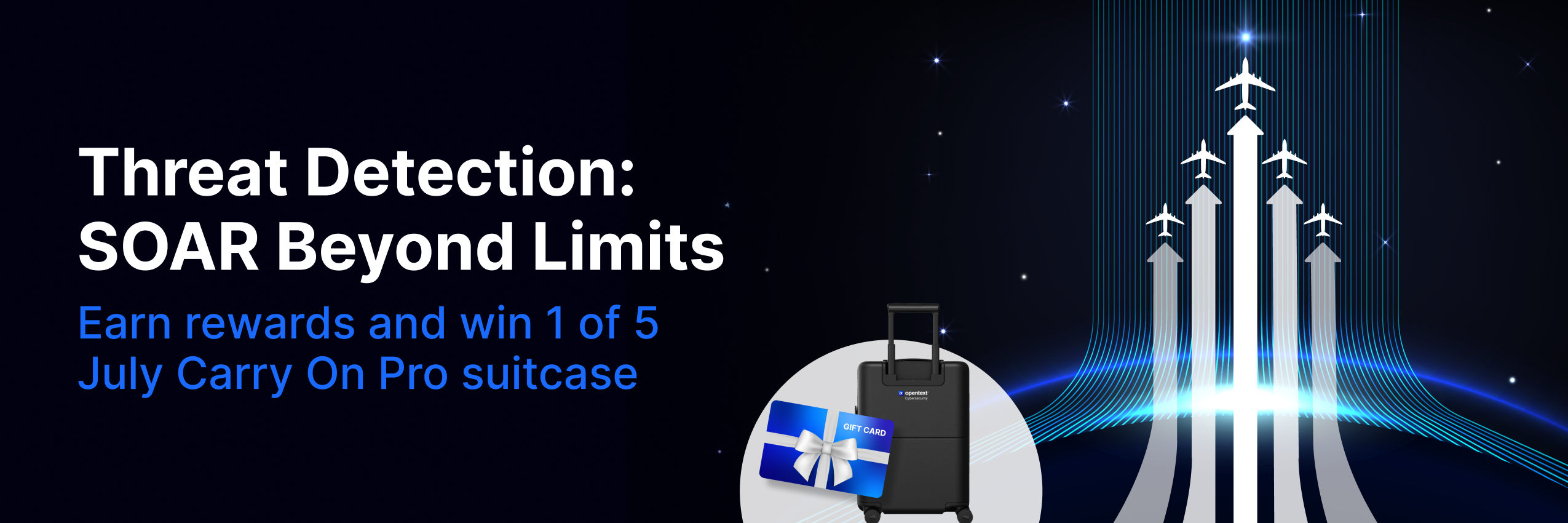 Receive an entry into the draw to win one of five July Carry On Pro suitcases for every sales order placed for OpenText Core EDR or OpenText Core MDR—because your success deserves to SOAR*!